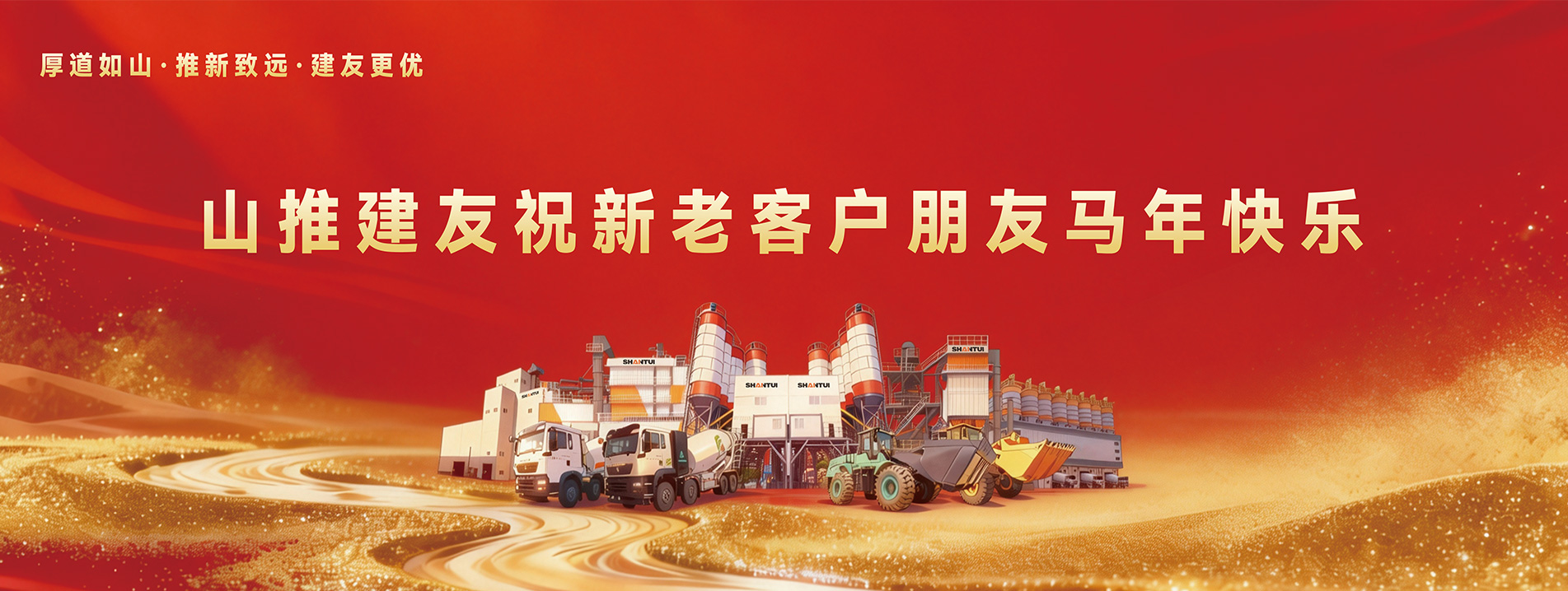 山推建友機械股份有限公司主營混凝土攪拌站、瀝青攪拌站、穩定土拌合站、干混砂漿站、制砂站、破碎線、混凝土攪拌運輸車、圾處理設備及拖泵、砂石分離機等各類攪拌機械。